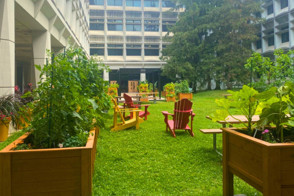 Le nouvel espace Jean-Rochon vous attend au coeur du pavillon Ferdinand-Vandry. Nommé en hommage à cet homme marquant de la santé publique, ce lieu verdoyant est idéal pour prendre un temps d’arrêt, profiter des jeux extérieurs, travailler en toute sérénité ou déguster votre repas en plein air!